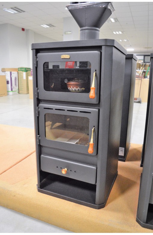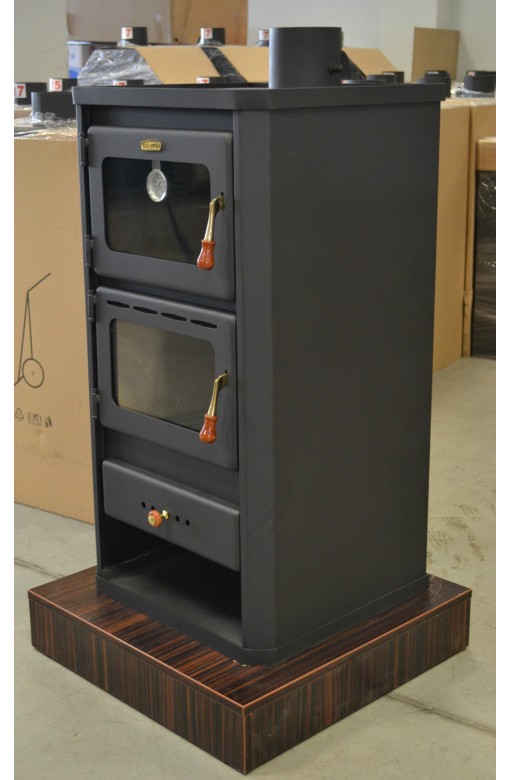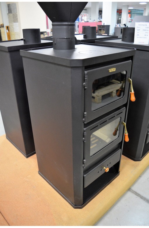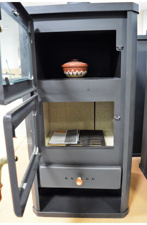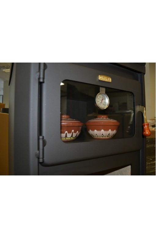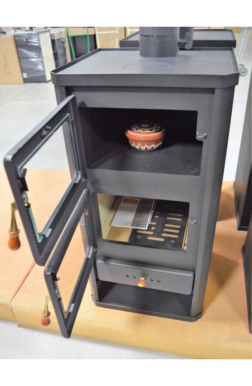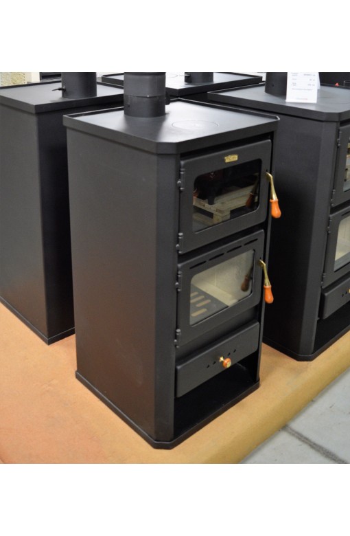 De Prity FM houtkachel is krachtig (12 kW) en heeft een heerlijke oven. De ruime oven heeft een hittebestendig raam zodat u uw maaltijd kunt zien garen. Bovenop zit een kookplaatje (ø 13 cm). Deze solide kachel weegt bijna 100 kilo.