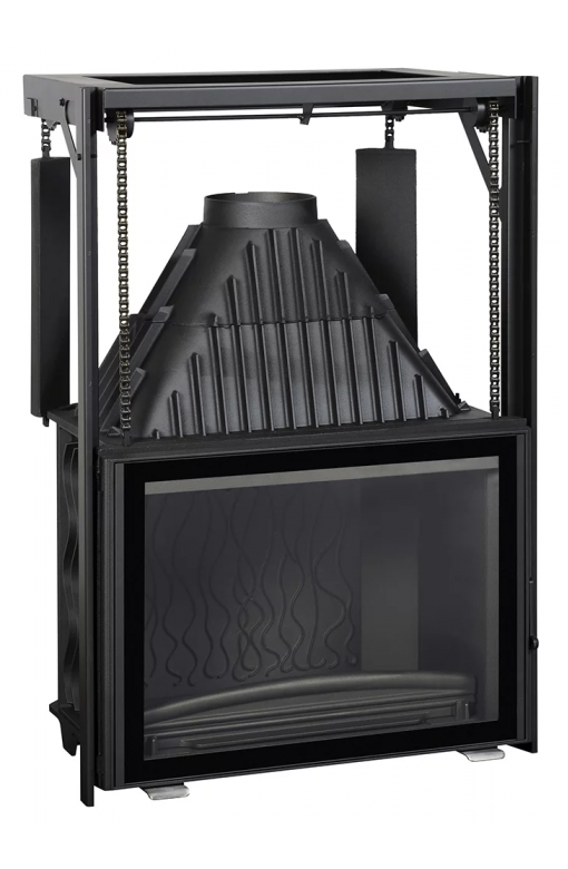 Ontspanning en prestaties wachten op u met deze verfijnde open haard. Met de deur omhoog, biedt het u alle geneugten van een laaiend vuur in de haard. Met de deur gesloten verwarmt hij uw huis effectief.
