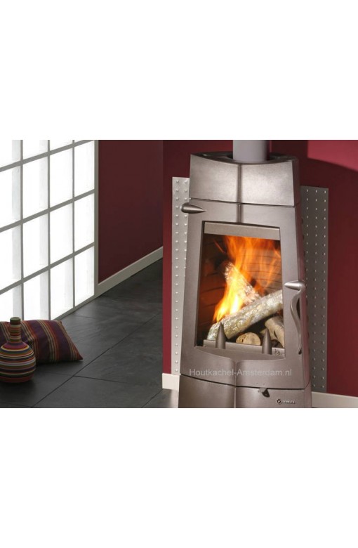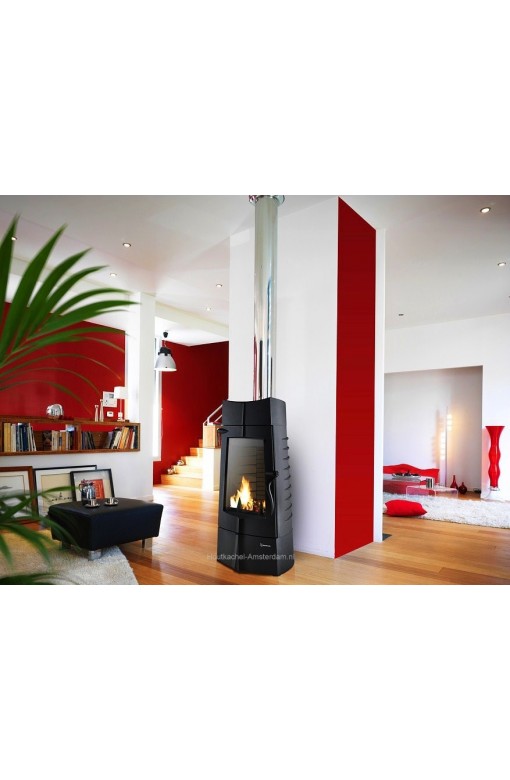 Sterke kracht  en excellente prestaties. Deze hoge houtkachel met prachtig innovatief ontwerp neemt weinig ruimte in en laat u maximaal genieten van het vlammenspel. Design : Bernard Dequet