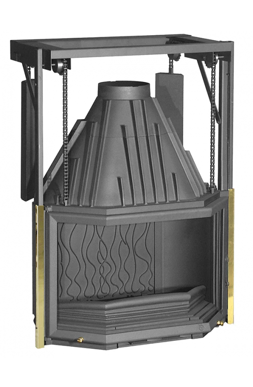 De prismatische afwerking van glas en messing geeft deze grote haard een originele stijl. Als extra bonus kun je genieten van een vuurtje in de open haard met de verstelbare deur.