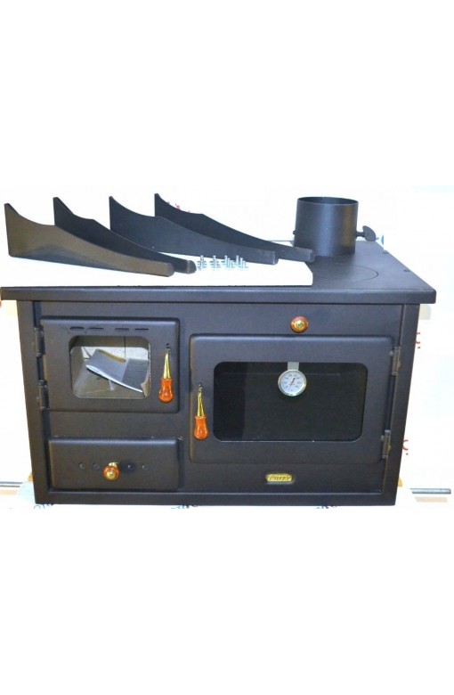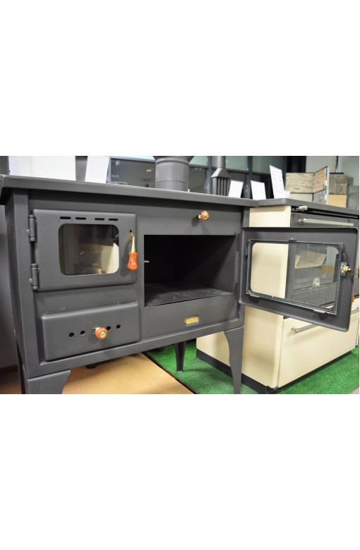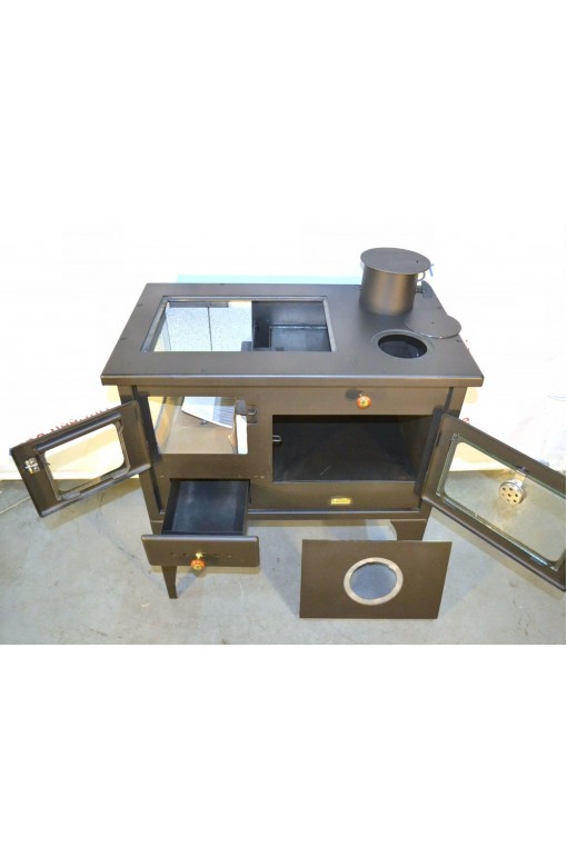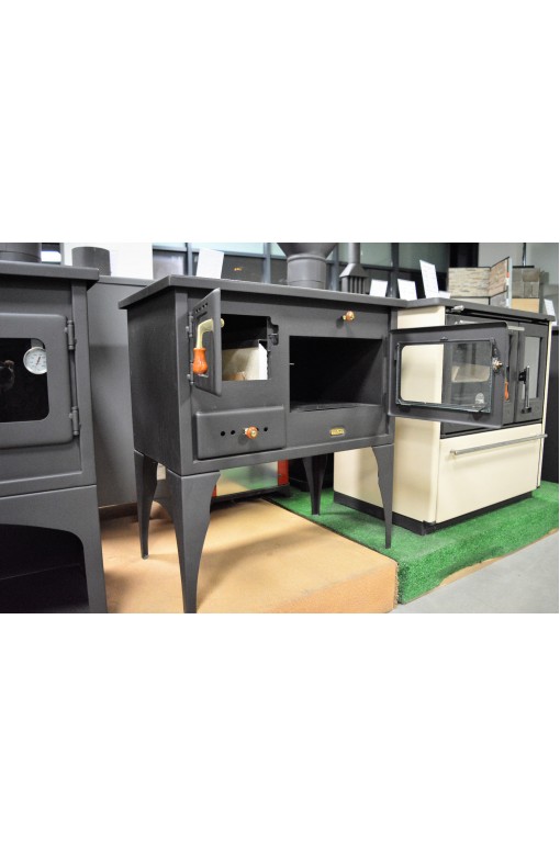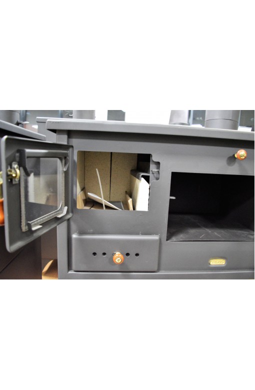 De oven heeft een hittebestendig raam met temperatuurmeter zodat u uw maaltijd kunt zien garen. Alle deurtjes hebben houten deurknoppen en worden dus niet heet.  Als u wat lekkers op het vuur of in de oven hebt, dan is de kunst om het vuur, en daarmee de temperatuur in de oven op een constante temeratuur te houden.